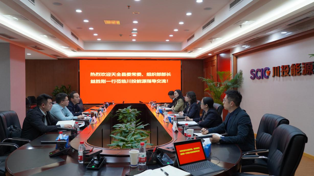 近日,天全縣委常委、組織部部長益勝剛帶隊來訪川投能源,就雙方開展黨建企地共建進行調研。川投能源黨委委員、財務總監劉好參與座談交流。