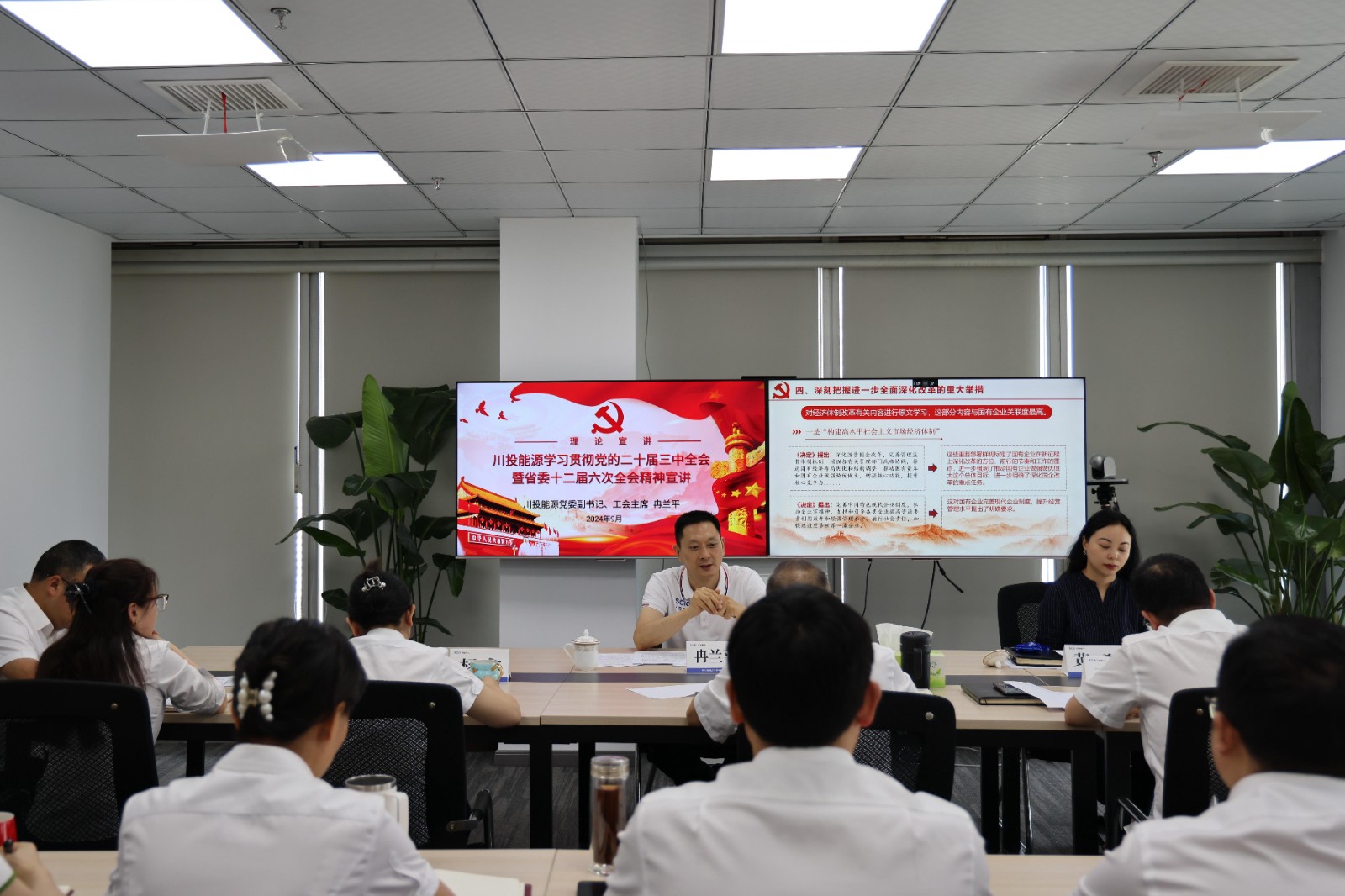 9月26日,川投能源黨委副書記、工會主席冉蘭平赴川投電力公司專題宣講黨的二十屆三中全會精神和省委十二屆六次全會精神,為進一步全面深化改革凝心聚力。川投電力黨委副書記、總經理蔡承德主持會議。