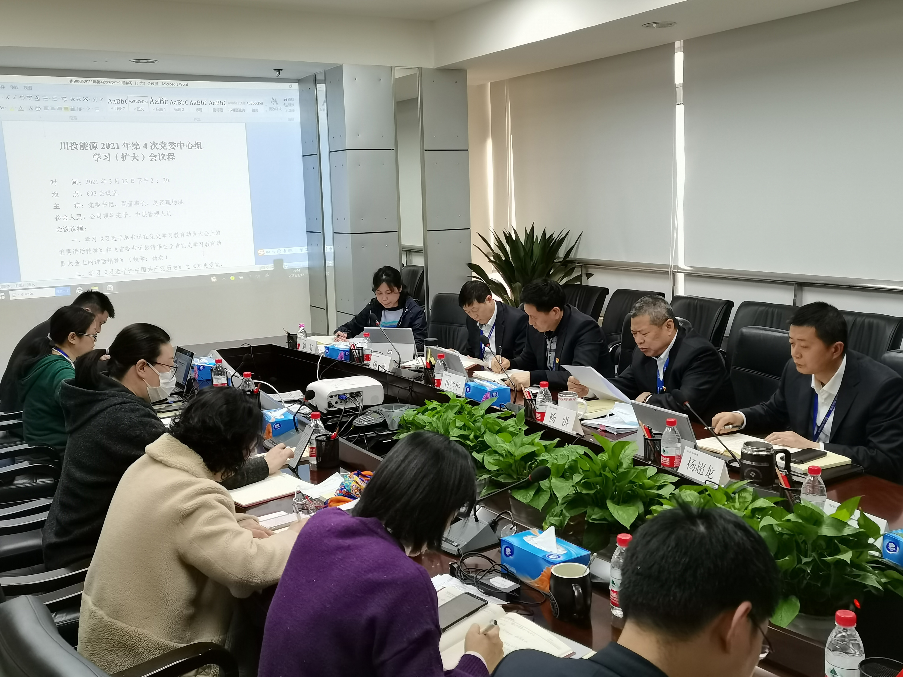 3月12日,川投能源召開黨委理論學(xué)習(xí)中心組學(xué)習(xí)(擴大)會議,傳達習(xí)近平總書記在黨史學(xué)習(xí)教育動員大會上的重要講話精神和省委書記彭清華在全省黨史學(xué)習(xí)教育動員大會上的講話精神,并集中學(xué)習(xí)《習(xí)近平論中國共產(chǎn)黨歷史》之《知史愛黨、知史愛國》篇章。公司黨委書記、副董事長、總經(jīng)理楊洪主持會議并帶頭領(lǐng)學(xué)。公司領(lǐng)導(dǎo)班子成員、各部門負責(zé)人參加學(xué)習(xí)。