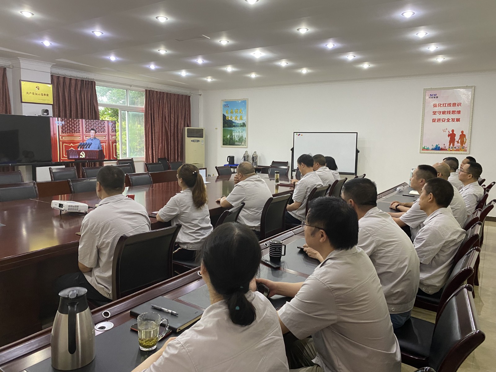 2021年7月1日上午8時,慶祝中國共產黨成立100周年大會在北京天安門廣場隆重舉行。中共中央總書記、國家主席、中央軍委主席習近平發表重要講話。川投能源組織本部及下屬子公司全體黨員職工共計200余人,在各自分會場以視頻方式實時觀看大會。
